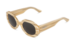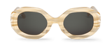 Montura redonda y contundente de inspiración maximalista. Presenta aristas geométricas y marcadas que le confieren una gran personalidad.