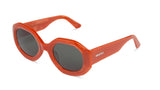 Montura redonda y contundente de inspiración maximalista. Presenta aristas geométricas y marcadas que le confieren una gran personalidad.