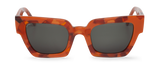 Montura rectangular en tonalidades cálidas con un patrón marmoleado que combina matices tierra rojizos. Su diseño geométrico y estructura sólida proyectan una estética elegante con un toque contemporáneo.