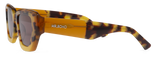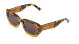Montura geométrica de inspiración retro, con un vibrante acabado carey en tonos ámbar y marrón. Un diseño atrevido que equilibra lo clásico con un toque moderno.