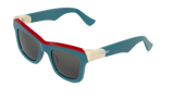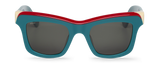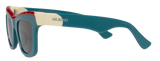 Montura en azul petróleo con detalles en crema y un toque de rojo en la parte inferior, Ideal para personas con un gusto por el diseño original.