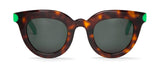Montura estilo 'cat eye' donde las líneas se suavizan para realzar la delicadeza de la forma pero creando a la vez un presencia fuerte mediante un grueso cuerpo e imponente personalidad.