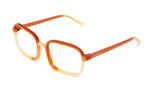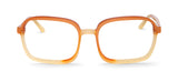 Gafa rectangular con esquinas curvas en acetato laminado que resalta por sus vibes 60's y grandes dimensiones.