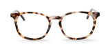 A pesar de su apariencia funcional, esta montura de acetato slim refuerza su personalidad por sus proporciones ajustadas.