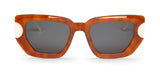 Gafas de sol con montura suntuosa y robusta con un ligero toque cat-eye. Destacan también sus fuertes líneas y diseño geométrico.