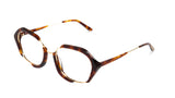 Gafa metálica que destaca por sus originales añadidos de acetato, creando una original montura hexagonal e irregular.