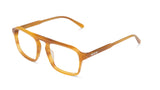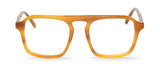 Montura de acetato rectangular que destaca por su original puente con un toque sesentero
