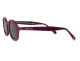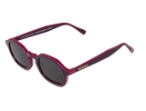Nuestro modelo El Patio tiene una forma ovalada con esquinas suaves, dando una sensación ligera y moderna a tu cara. Este diseño cuenta con un tono vino tinto y un borde morado, evocando la elegancia y sutileza del accesorio.
