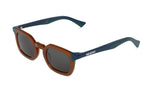 Montura de gafas de sol de lineas rectas y forma estilizada que se sirve de lineas contundentes para generar una montura con toque 90's.