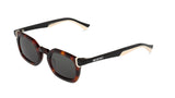 Montura de gafas de sol de lineas rectas y forma estilizada que se sirve de lineas contundentes para generar una montura con toque 90's.