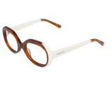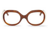 Montura circular metálica con apliques en acetato exteriores en una combinación particular y llamativa.