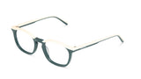 A pesar de su apariencia funcional, esta montura de acetato slim refuerza su personalidad por sus proporciones ajustadas.