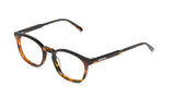 A pesar de su apariencia funcional, esta montura de acetato slim refuerza su personalidad por sus proporciones ajustadas.