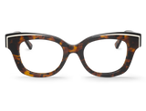 Montura circular metálica con apliques en acetato exteriores en una combinación particular y llamativa.