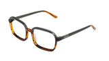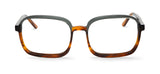 Gafa rectangular con esquinas curvas en acetato laminado que resalta por sus vibes 60's y grandes dimensiones.