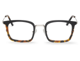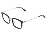 Montura circular metálica con apliques en acetato exteriores en una combinación particular y llamativa.