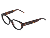 Montura circular metálica con apliques en acetato exteriores en una combinación particular y llamativa.