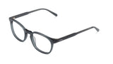 A pesar de su apariencia funcional, esta montura de acetato slim refuerza su personalidad por sus proporciones ajustadas.
