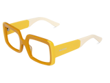 Montura circular metálica con apliques en acetato exteriores en una combinación particular y llamativa.