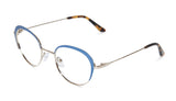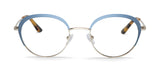 Esta nueva montura metálica toma una forma tradicional circular y la realza con unas pletinas de color para reforzar su particularidad.
