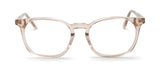 A pesar de su apariencia funcional, esta montura de acetato slim refuerza su personalidad por sus proporciones ajustadas.
