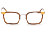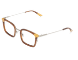 Montura circular metálica con apliques en acetato exteriores en una combinación particular y llamativa.