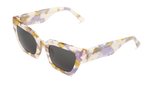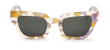 Montura rectangular con un llamativo patrón marmoleado que fusiona tonos marfil, lila y dorado. Su diseño angular y la mezcla de colores suaves con matices cálidos aportan un equilibrio entre elegancia y originalidad.