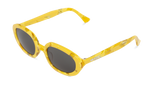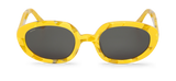 Montura envolvente en amarillo vibrante con detalles marmoleados. Una pieza audaz y luminosa.