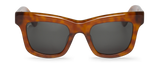 Gafas de sol rectangulares con montura en carey ámbar y lentes oscuros. Su forma marcada y el acabado brillante evocan un estilo clásico con carácter.