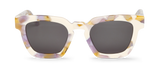 Un diseño audaz y moderno con montura efecto mármol en tonos crema, ámbar y lavanda. Su forma cuadrada aporta un toque sofisticado y original.