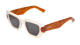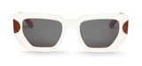 Gafas de sol con montura suntuosa y robusta con un ligero toque cat-eye. Destacan también sus fuertes líneas y diseño geométrico.